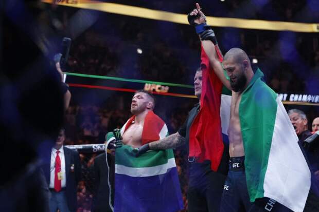 true true true Чеченский боец Хамзат Чимаев единогласным решением судей победил представителя ЮАР Дрикуса Дю Плесси и стал новым чемпионом UFC в среднем весе.